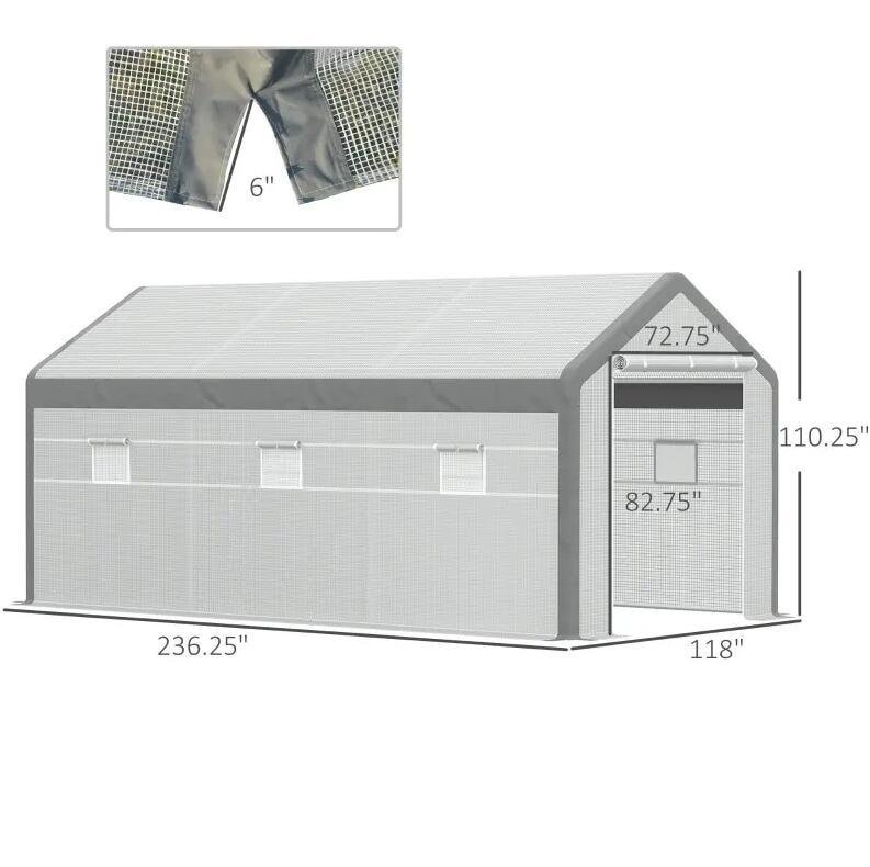 Home > 20' L x 10' W x 9' H Large Walk-in Greenhouse with Roll Up Door; 8 Closeable Windows; & Weather PE Cover