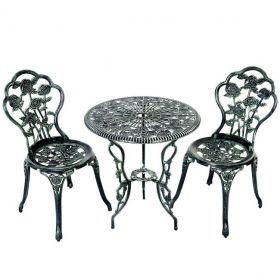 Patio Balcony Stylish Cast Aluminum Bistro Bar Table  Chair 3 Pcs Set (Color: As show the pic, size: 24 Inch)