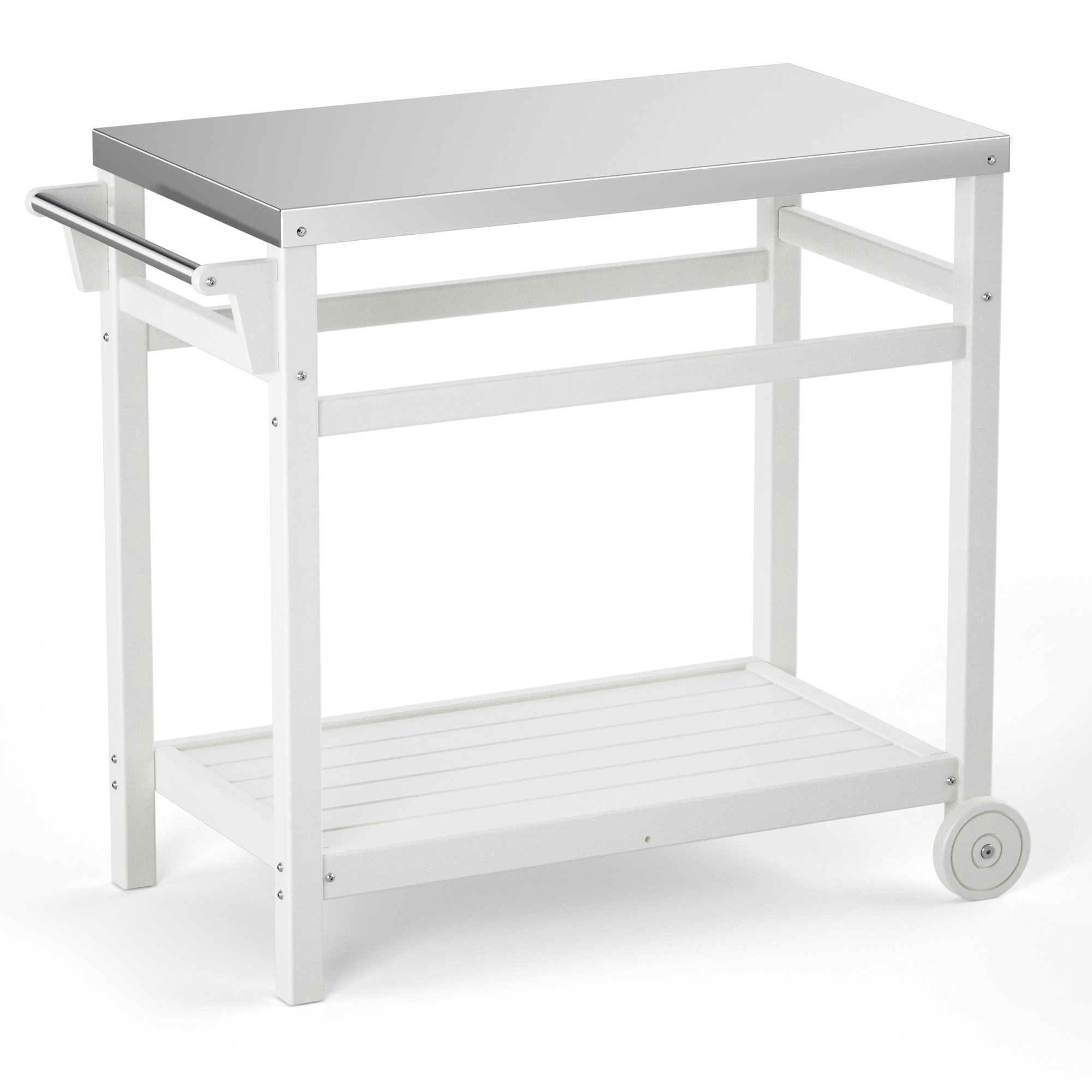 4.4.[Outdoor Pizza Oven Grill Table Prep Cart ]You can roll it across your yard to the BBQ area .This is not a super lightweight plastic prep table. It has stainless steel top with HDPE frame. The prep cart is around 40 pounds. You can use it for portable barbecue grill or put your pizza oven on it.
