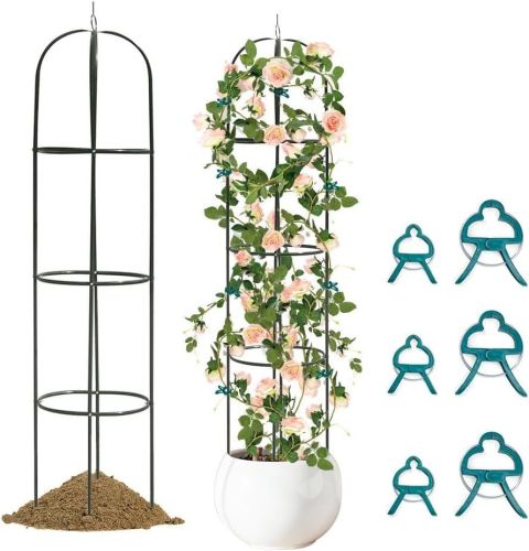 4.Perfect Material:The obelisk trellis is constructed of metal tubes and weather-resistant black steel tube powder coated, with a high quality support tube design for lightweight, sturdy support. Clips are non-rusting spring wire and quality plastic, durable, waterproof and durable.